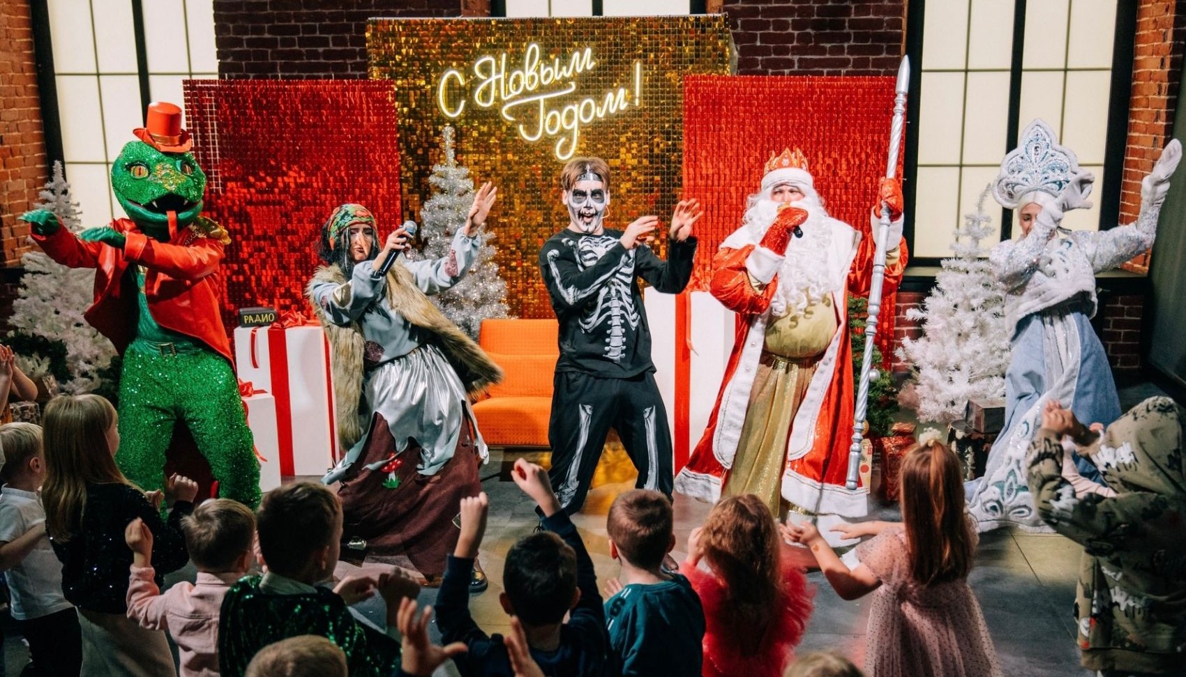 • Снежная дискотека с символом года 2026.